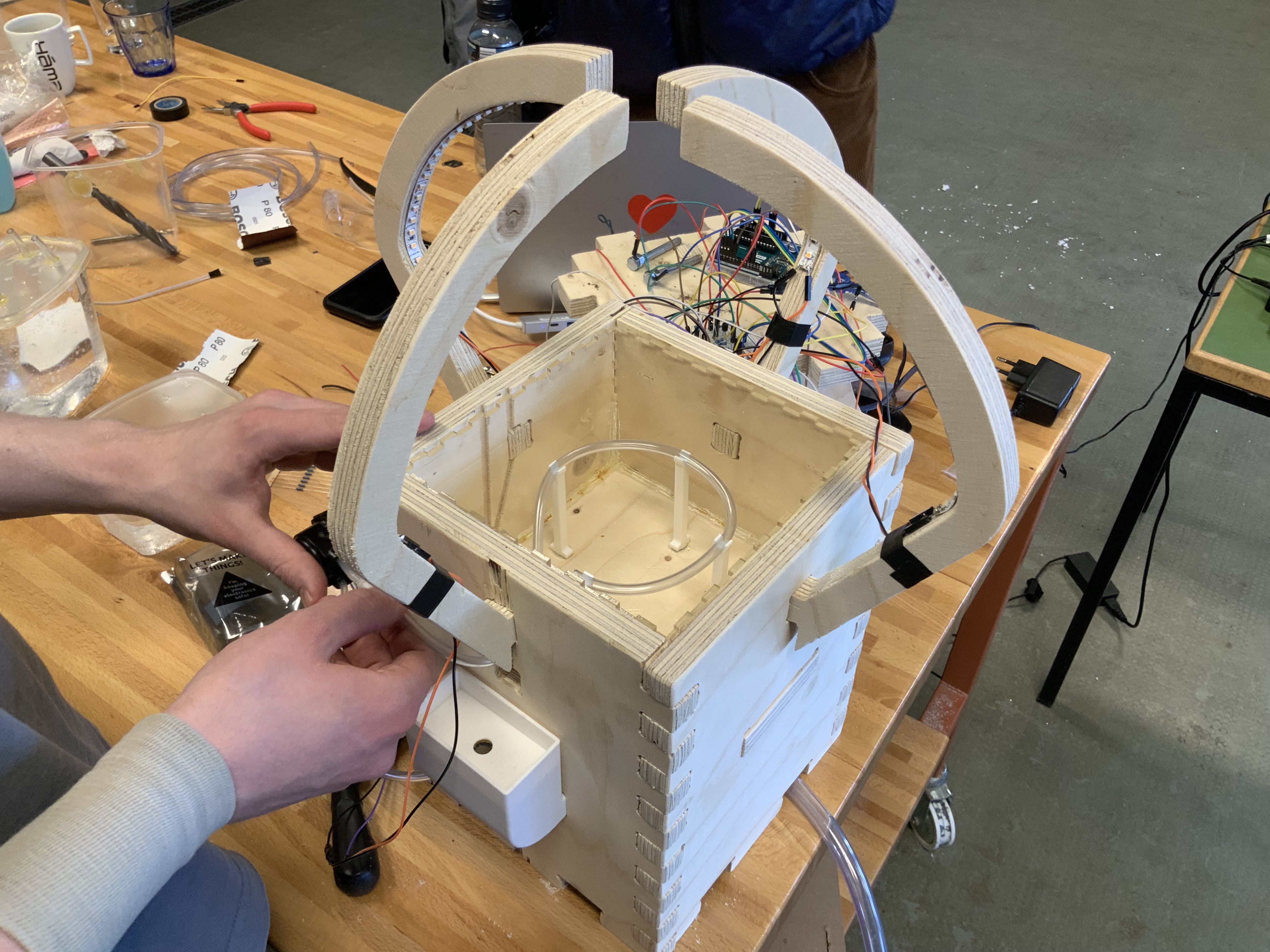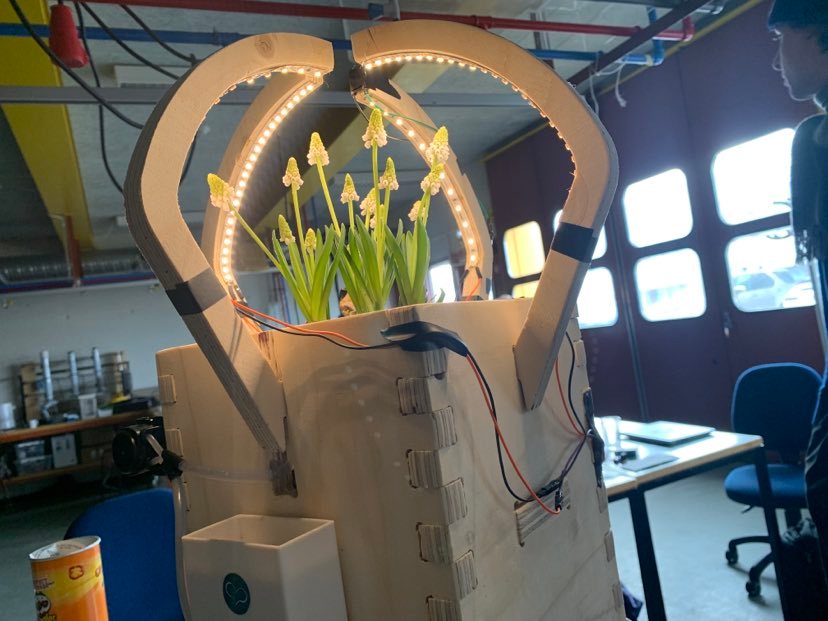 This the documentation of making the actual flowerpot that was then automated with an Arduino, light sensors, water pump and more. The actual implemention of the circuitry and the logic in the code will not be covered here.