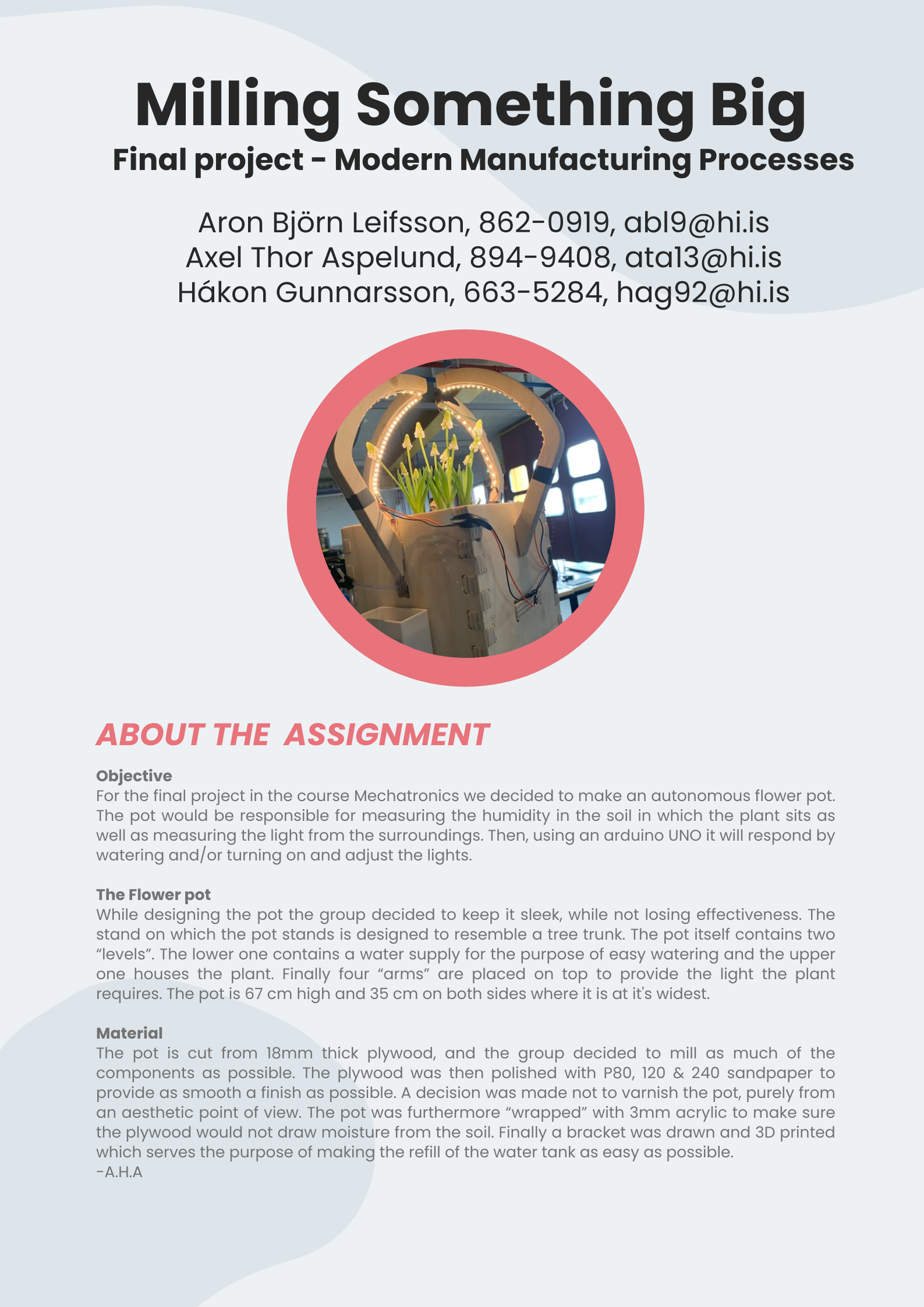 While Hákon did most of the drawing and designing, I helped plan the layout and orientation of the object. I oversaw the milling process with Hákon.